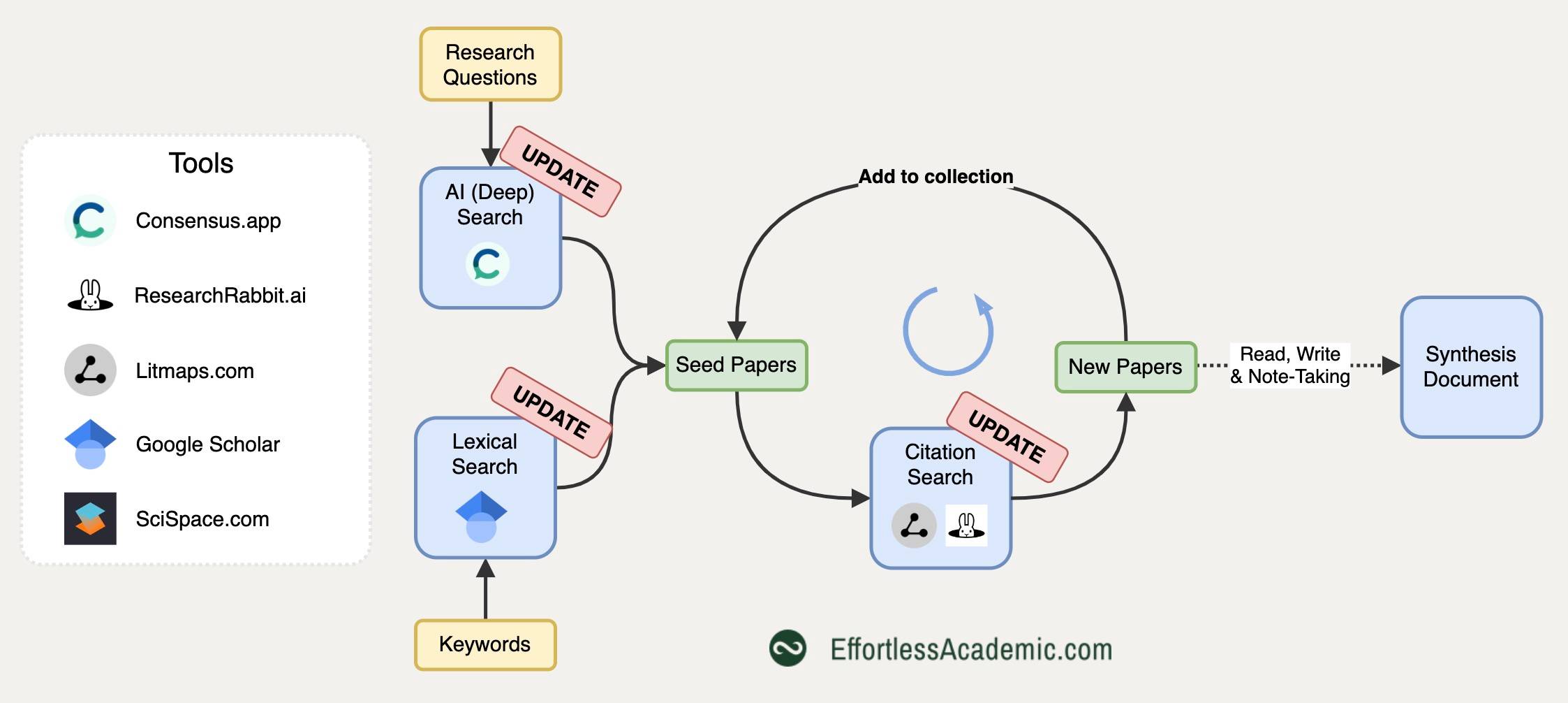 Updates to The 3 Core Tools For Literature Search Dear Scholar, If you have been following me for a while, you might have heard of the "AI search loop." Given a question, this method is a thorough yet rapid way to find relevant scientific literature. Today's newsletter covers recent updates to all involved tools. Most interestingly, Google Scholar is now becoming an alternative to pricy AI tools. (See below what it means for the big picture.) Here's how the search loop works: Based on a...